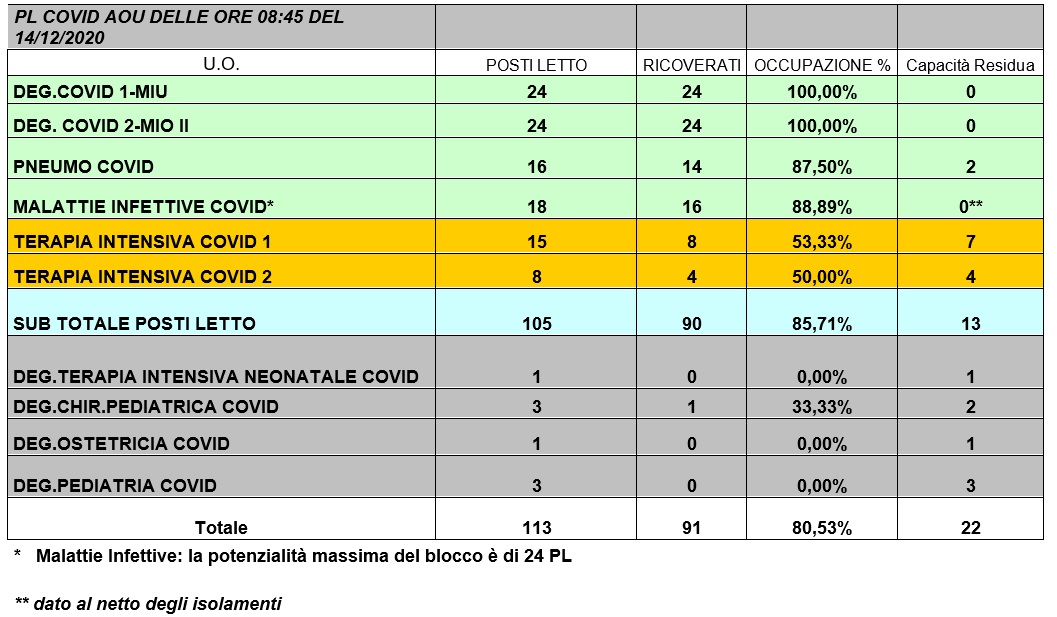 Situazione posti letto reparti Covid -14 dicembre 2020 - ore 8.45.jpg
