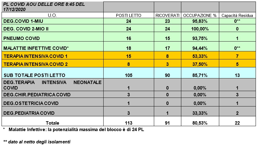 Situazione posti letto reparti Covid -17 dicembre 2020 - ore 8.30.jpg