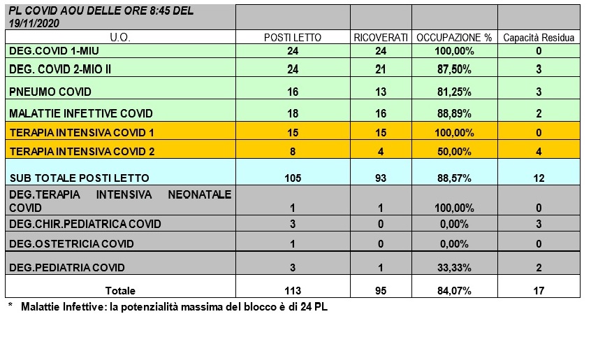 Situazione posti letto reparti Covid -19 novembre 2020 - ore 8.30.jpg