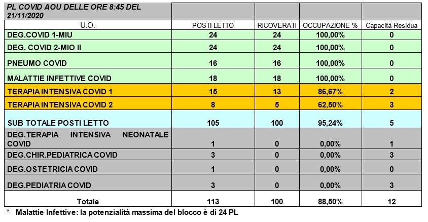 Situazione posti letto reparti Covid -21 novembre 2020 - ore 8.30.jpg