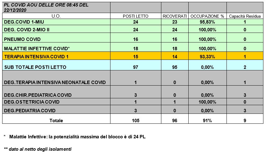 Situazione posti letto reparti Covid -22 dicembre 2020 - ore 8.30.jpg