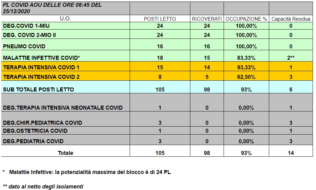 Situazione posti letto reparti Covid -25 dicembre 2020 - ore 8.30.jpg