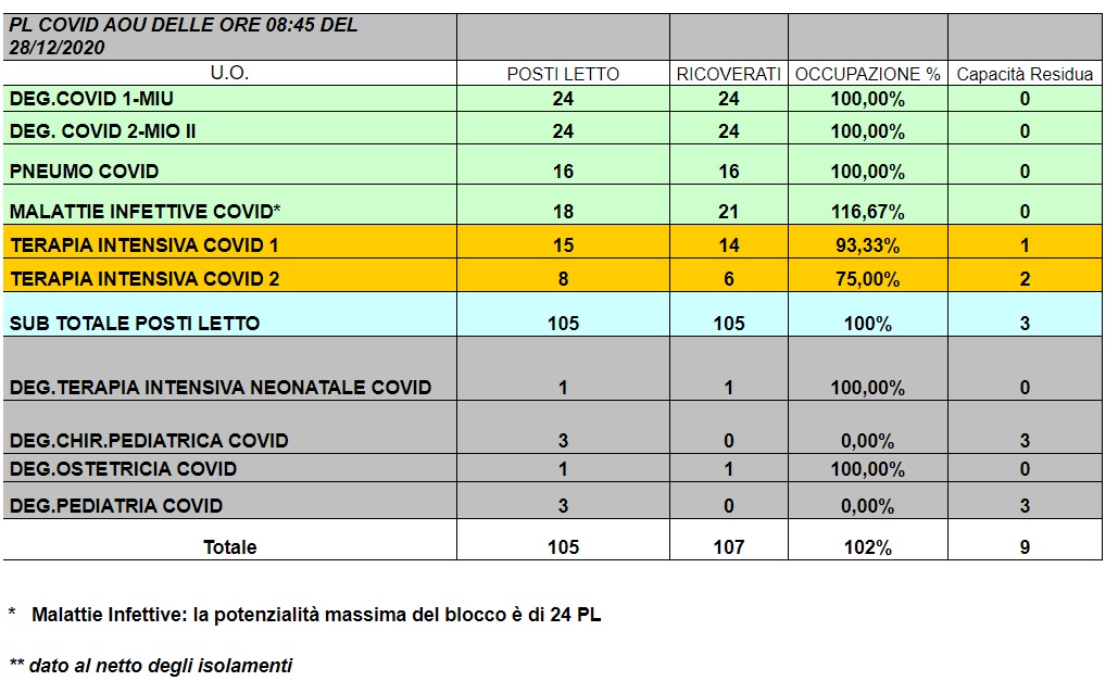 Situazione posti letto reparti Covid -28 dicembre 2020 - ore 8.30.jpg