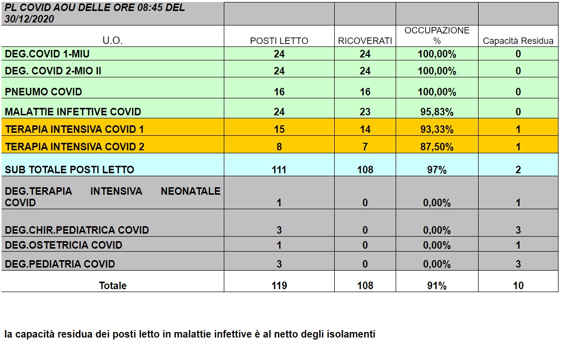 Situazione posti letto reparti Covid -30 dicembre 2020 - ore 8.30.jpg