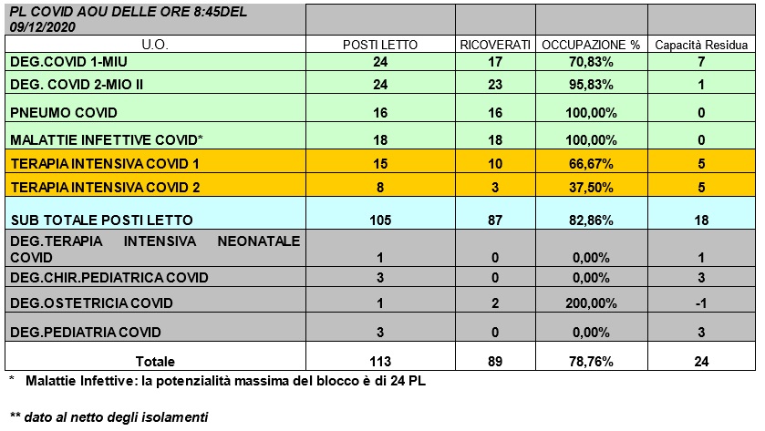 Situazione posti letto reparti Covid -9 dicembre 2020 - ore 8.30.jpg