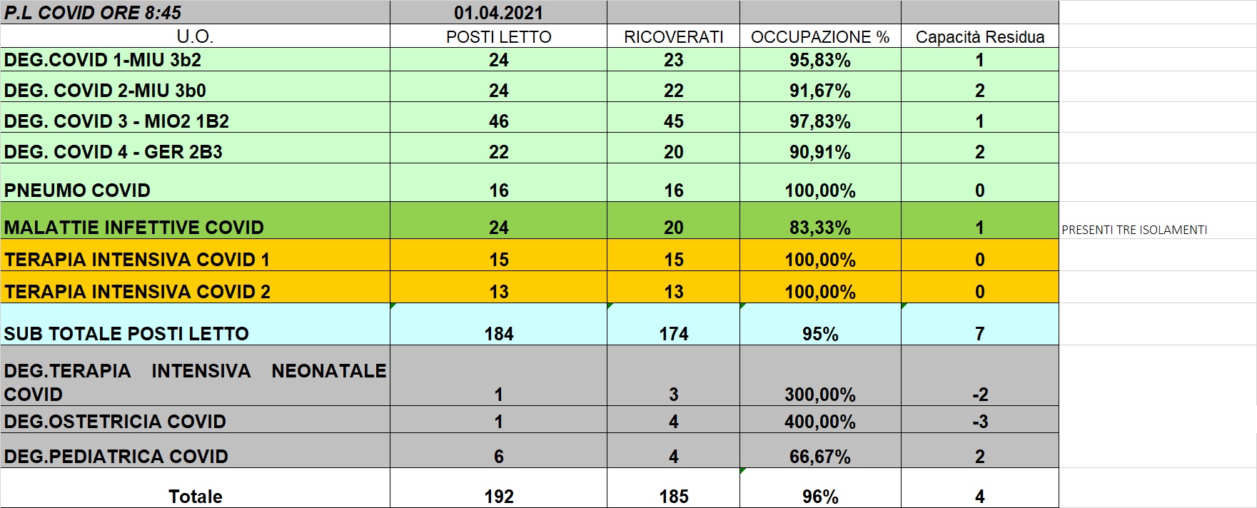 Situazione posti letto reparti Covid 1 aprile 2021 - ore 8.45.jpg