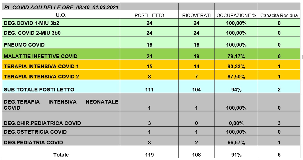 Situazione posti letto reparti Covid 1 marzo 2021 - ore 8.30.jpg