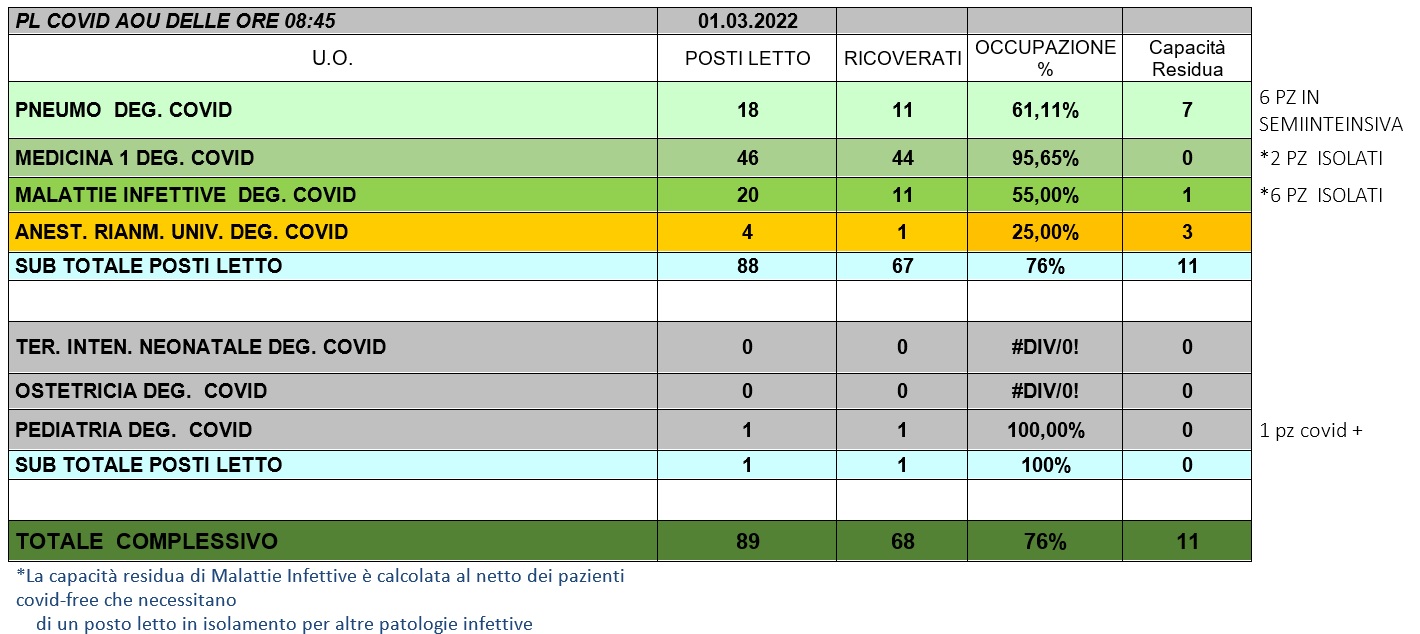 Situazione posti letto reparti Covid 1 marzo 2022 - ore 8.45.jpg