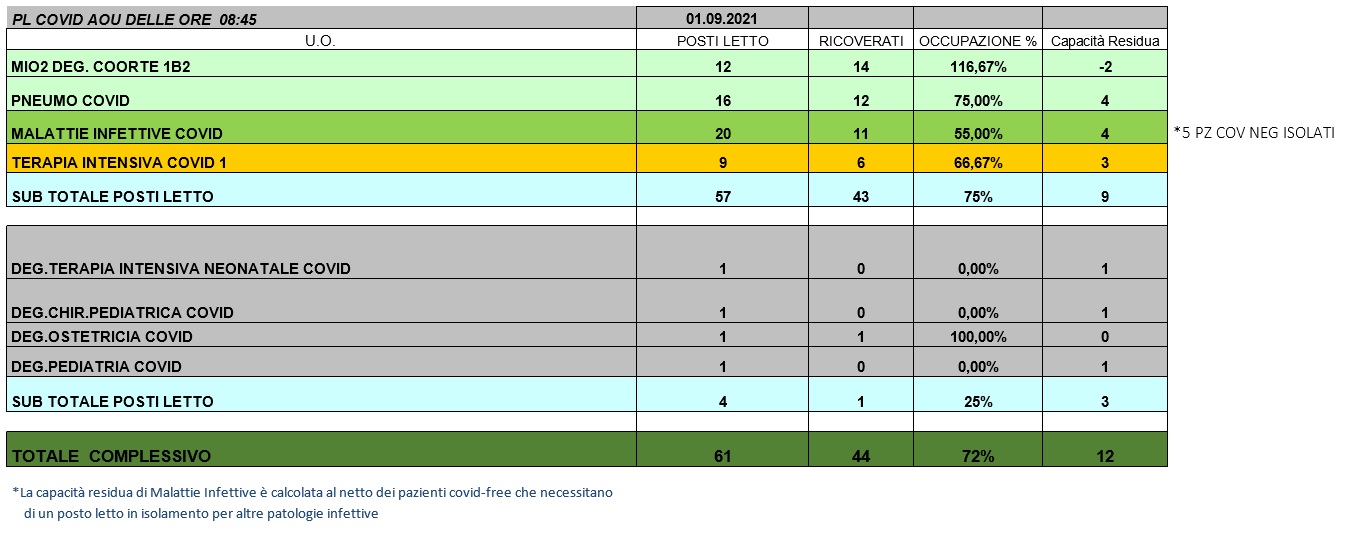 Situazione posti letto reparti Covid 1 settembre 2021 - ore 8.45.jpg
