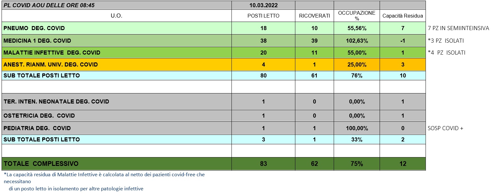 Situazione posti letto reparti Covid 10 marzo 2022 - ore 8.45.jpg