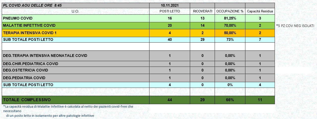 Situazione posti letto reparti Covid 10 novembre 2021 - ore 8.30.jpg