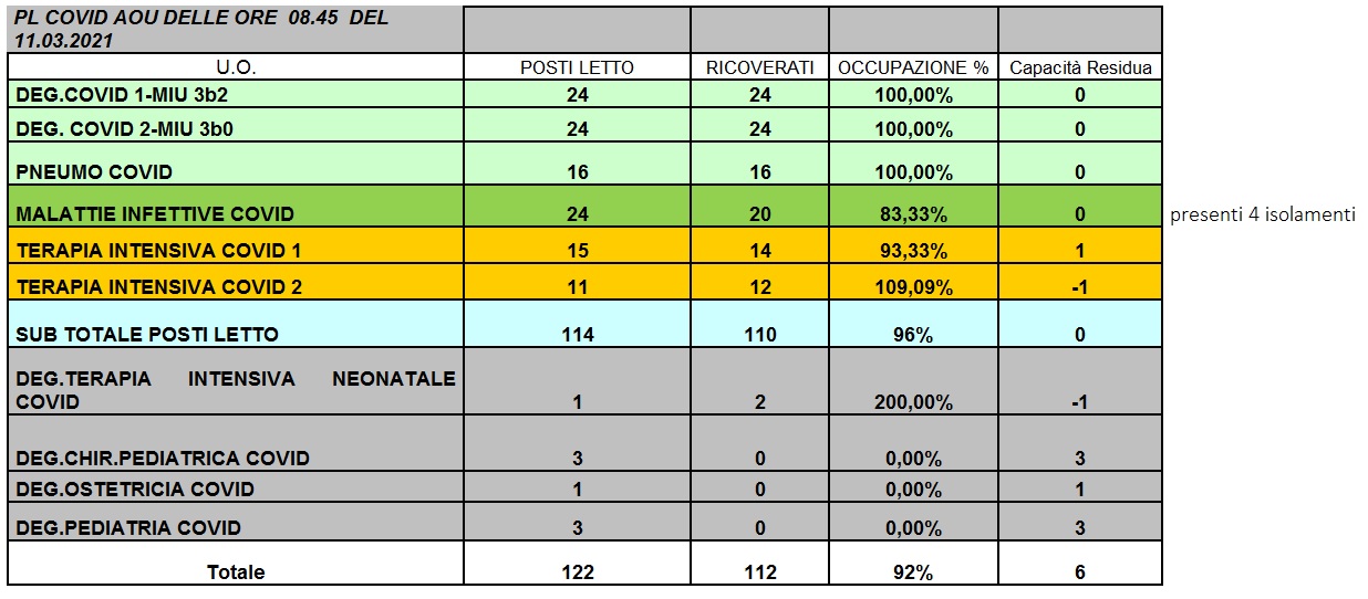 Situazione posti letto reparti Covid 11 marzo 2021 - ore 8.30.jpg