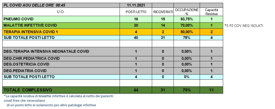 Situazione posti letto reparti Covid 11 novembre 2021 - ore 8.30.jpg