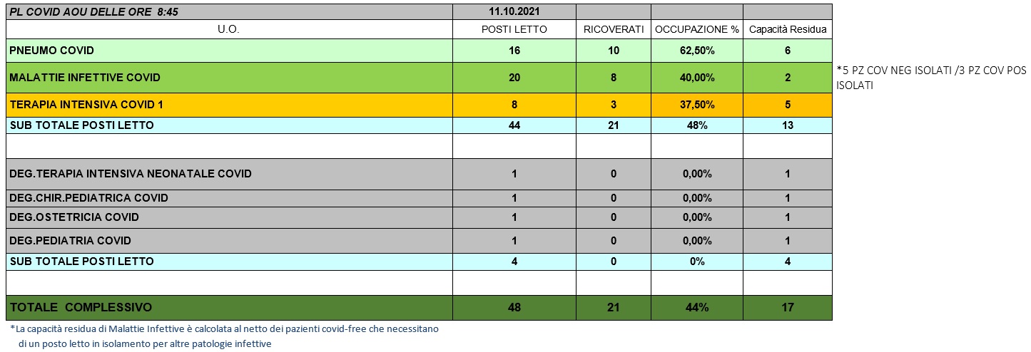 Situazione posti letto reparti Covid 11 ottobre 2021 - ore 8.45.jpg