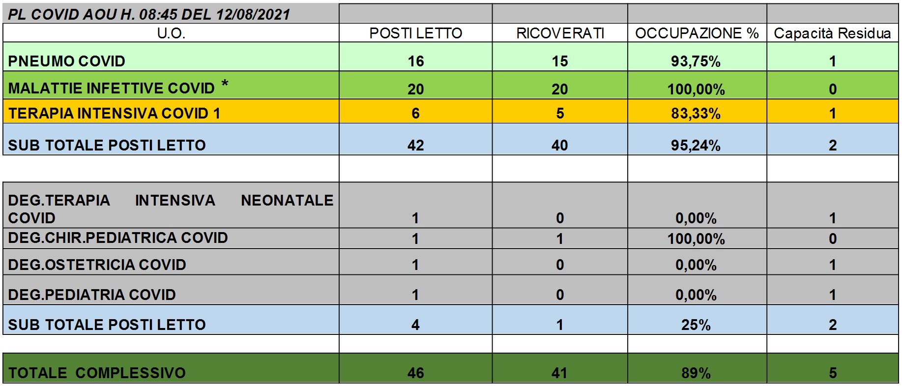 Situazione posti letto reparti Covid 12 Agosto 2021 - ore 8.45.jpg