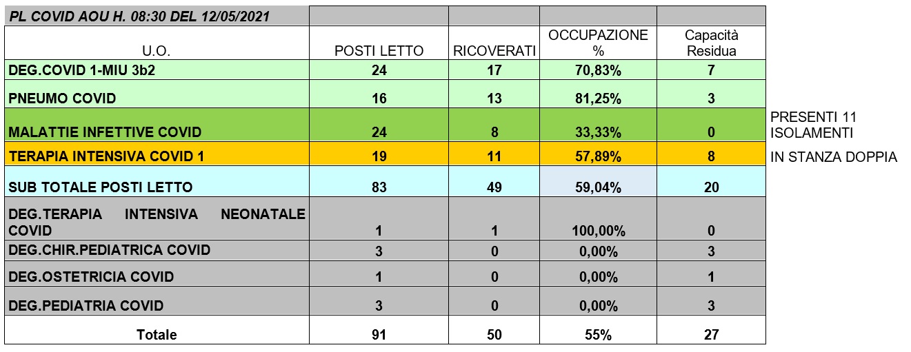 Situazione posti letto reparti Covid 12 maggio 2021 - ore 8.30.jpg