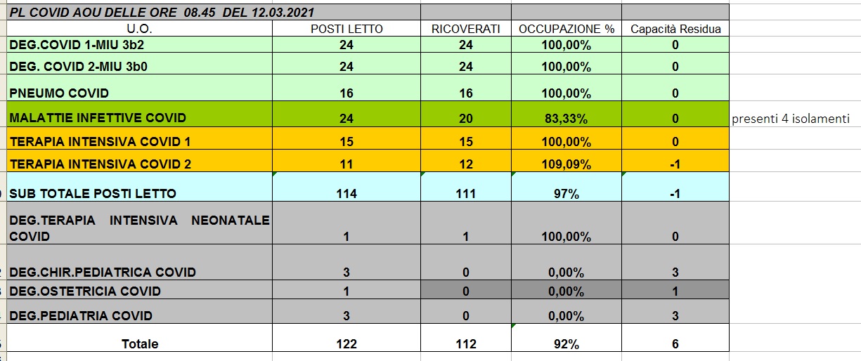 Situazione posti letto reparti Covid 12 marzo 2021 - ore 8.30.jpg
