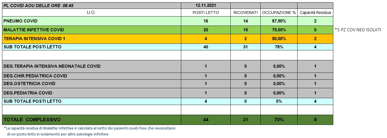 Situazione posti letto reparti Covid 12 novembre 2021 - ore 8.45.jpg