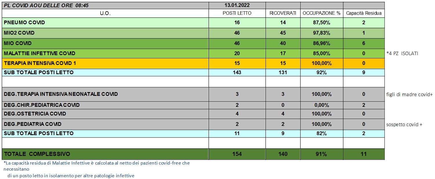 Situazione posti letto reparti Covid 13 Gennaio 2022 - ore 8.45.jpg