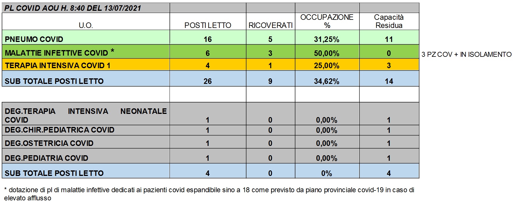 Situazione posti letto reparti Covid 13 Luglio 2021 - ore 8.40.jpg