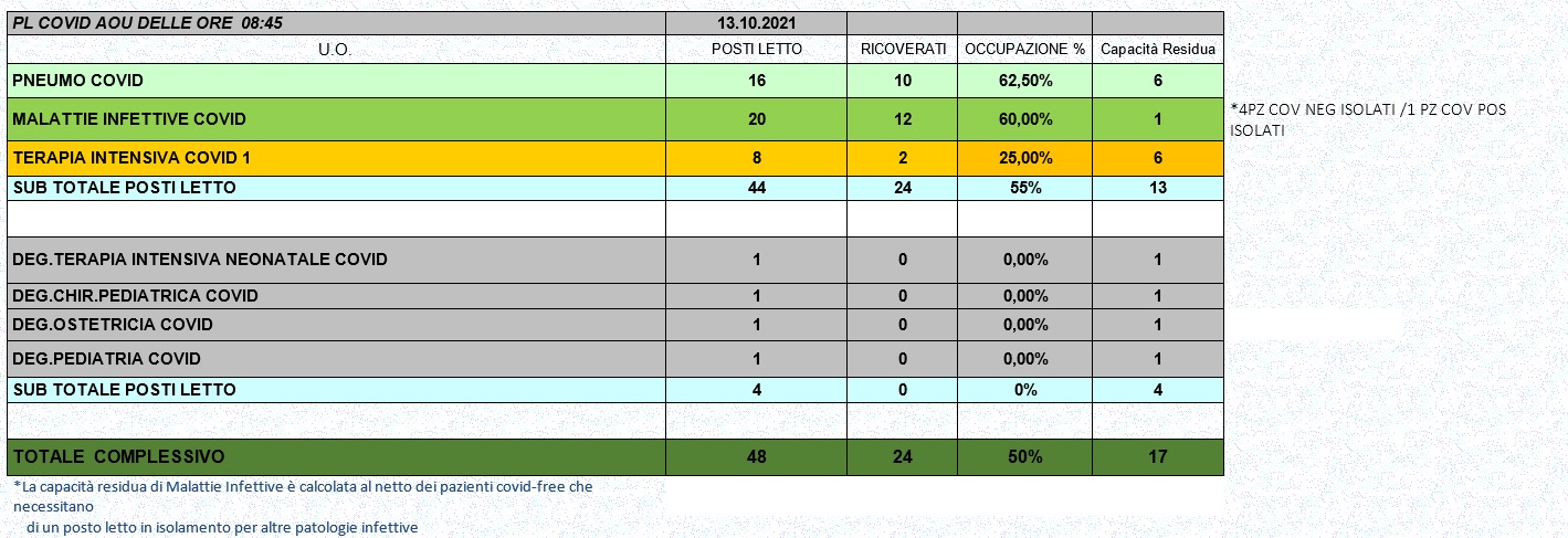 Situazione posti letto reparti Covid 13 ottobre 2021 - ore 8.30.jpg