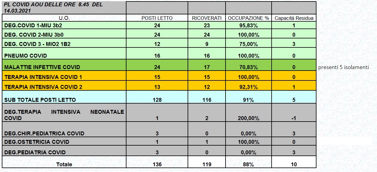 Situazione posti letto reparti Covid 14 marzo 2021 - ore 8.30.jpg