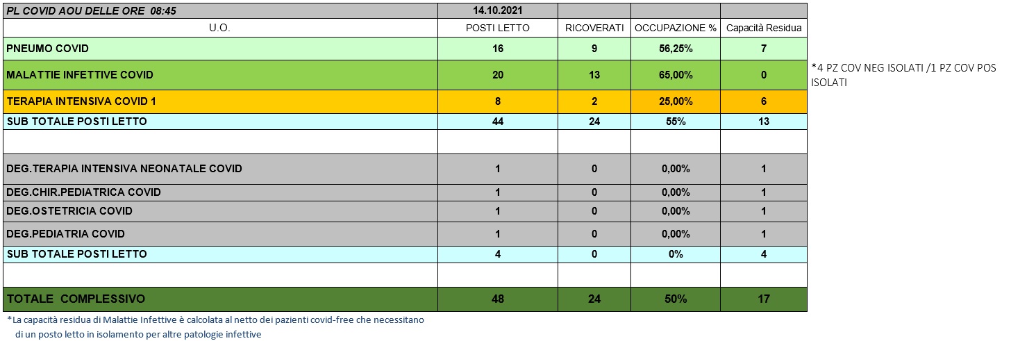 Situazione posti letto reparti Covid 14 ottobre 2021 - ore 8.45.jpg