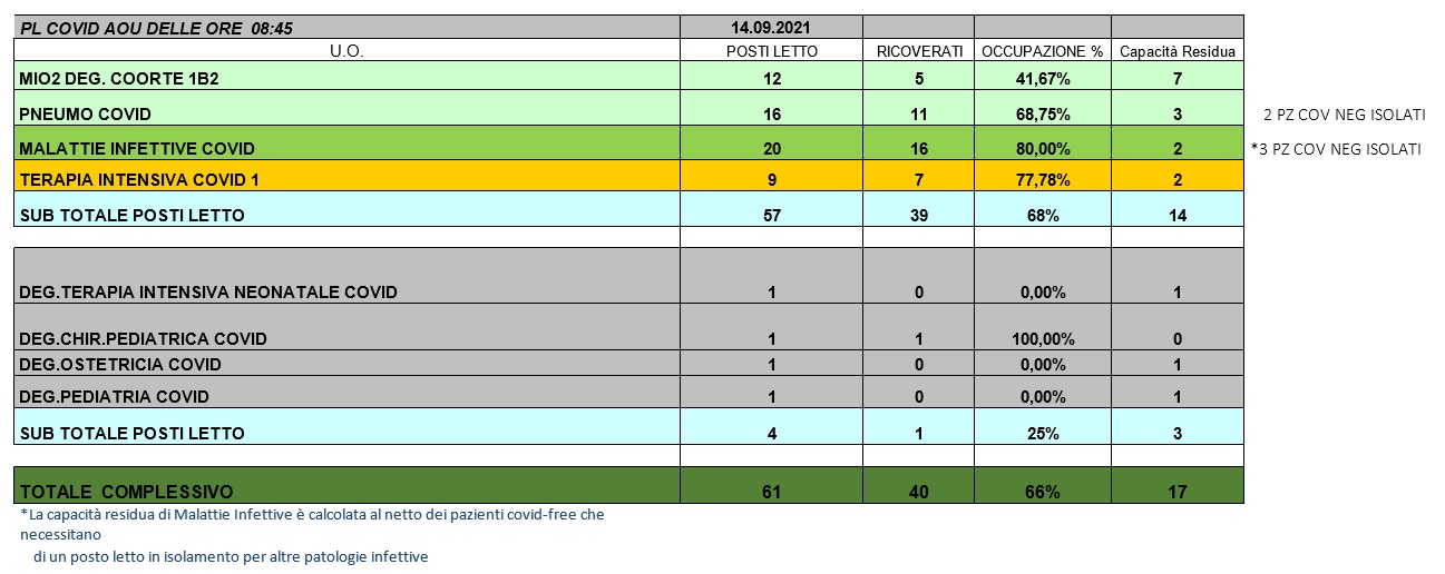 Situazione posti letto reparti Covid 14 settembre 2021 - ore 8.45.jpg