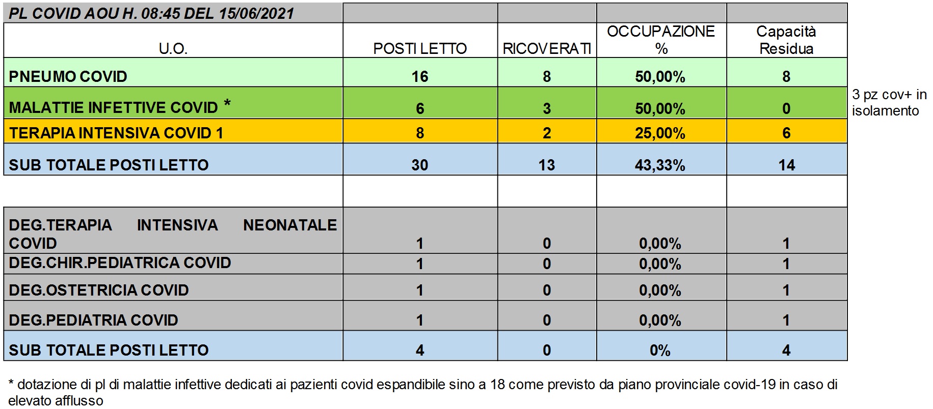 Situazione posti letto reparti Covid 15 Giugno 2021 - ore 8.45.jpg