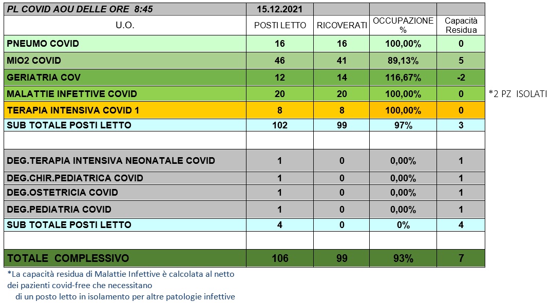 Situazione posti letto reparti Covid 15 dicembre 2021 - ore 8.45.jpg