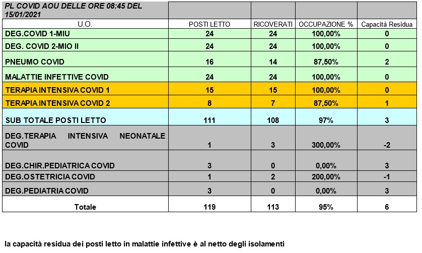Situazione posti letto reparti Covid 15 gennaio 2021 - ore 8.30.jpg