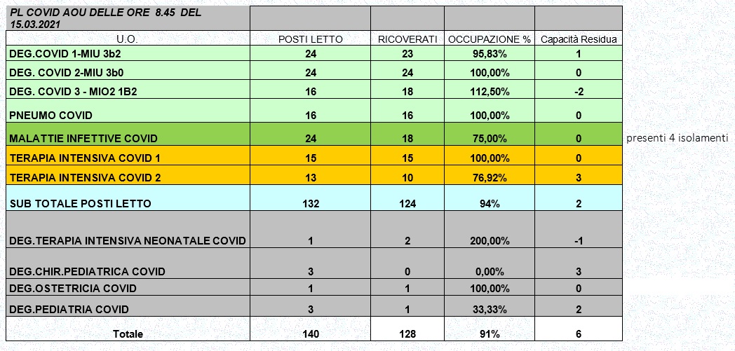 Situazione posti letto reparti Covid 15 marzo 2021 - ore 8.30.jpg