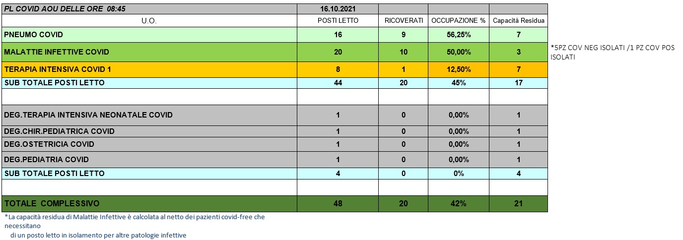 Situazione posti letto reparti Covid 16 ottobre 2021 - ore 8.30.jpg