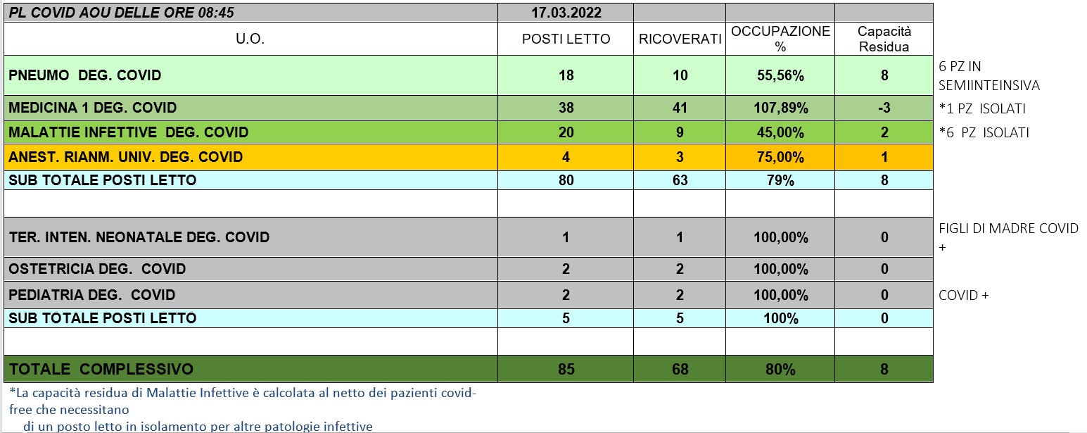 Situazione posti letto reparti Covid 17 marzo 2022 - ore 8.45.jpg