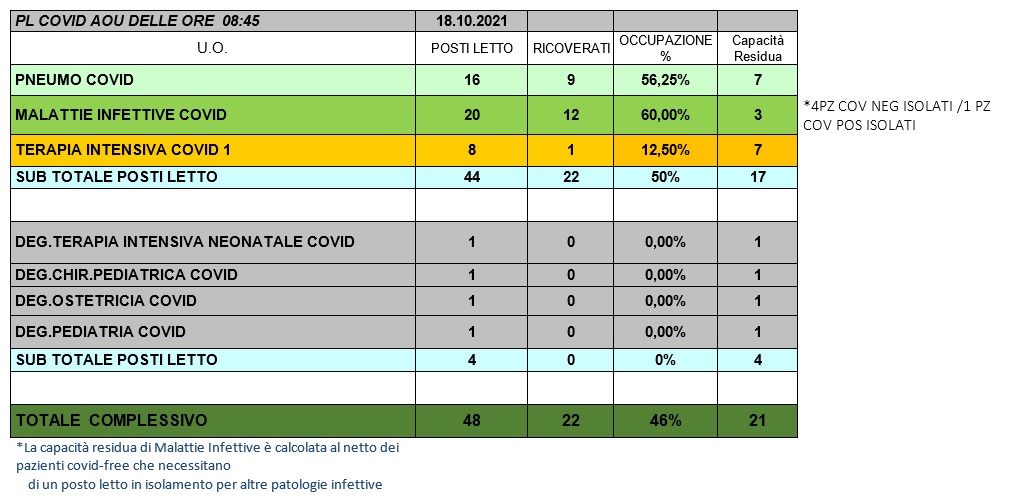 Situazione posti letto reparti Covid 18 ottobre 2021 - ore 8.30.jpg