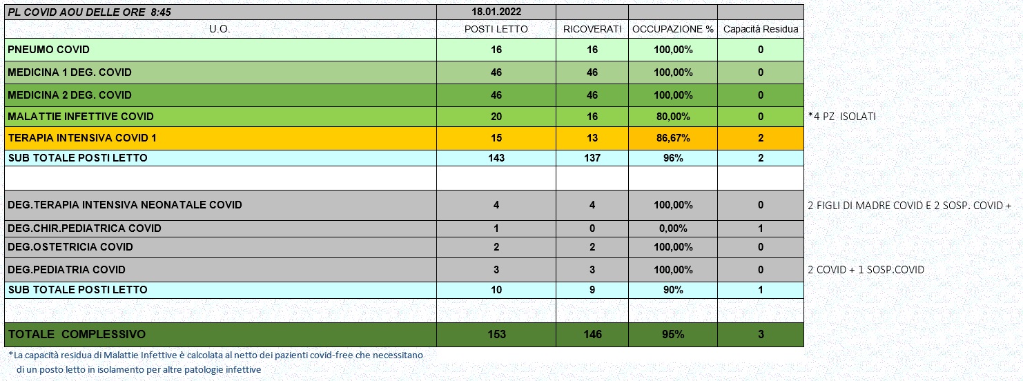 Situazione posti letto reparti Covid 18 Gennaio 2022 - ore 8.45.jpg