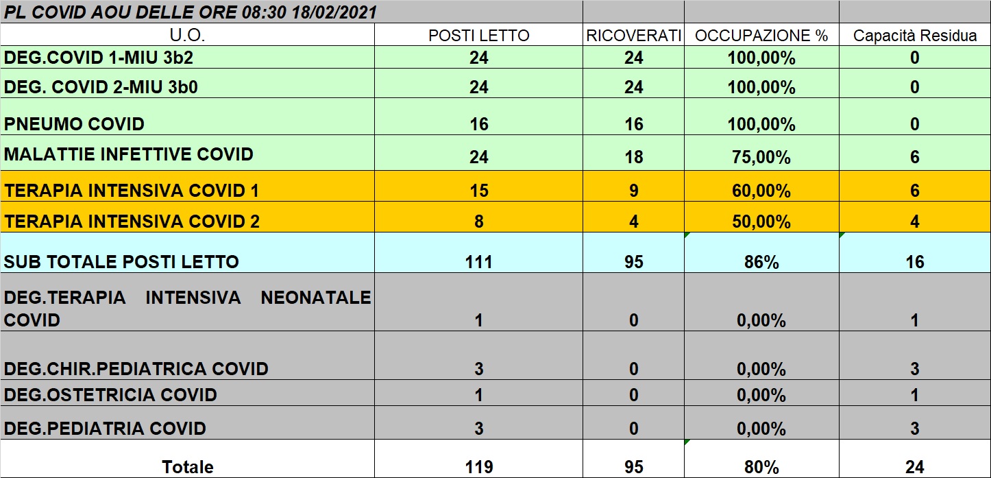 Situazione posti letto reparti Covid 18 febbraio 2021 - ore 8.30.jpg