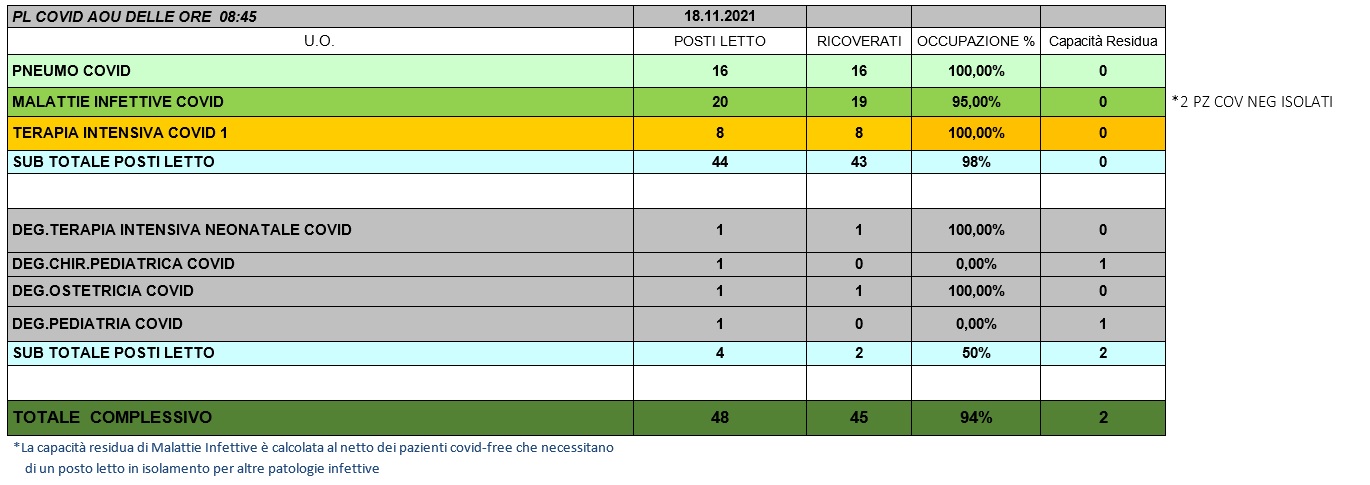 Situazione posti letto reparti Covid 18 novembre 2021 - ore 8.45.jpg