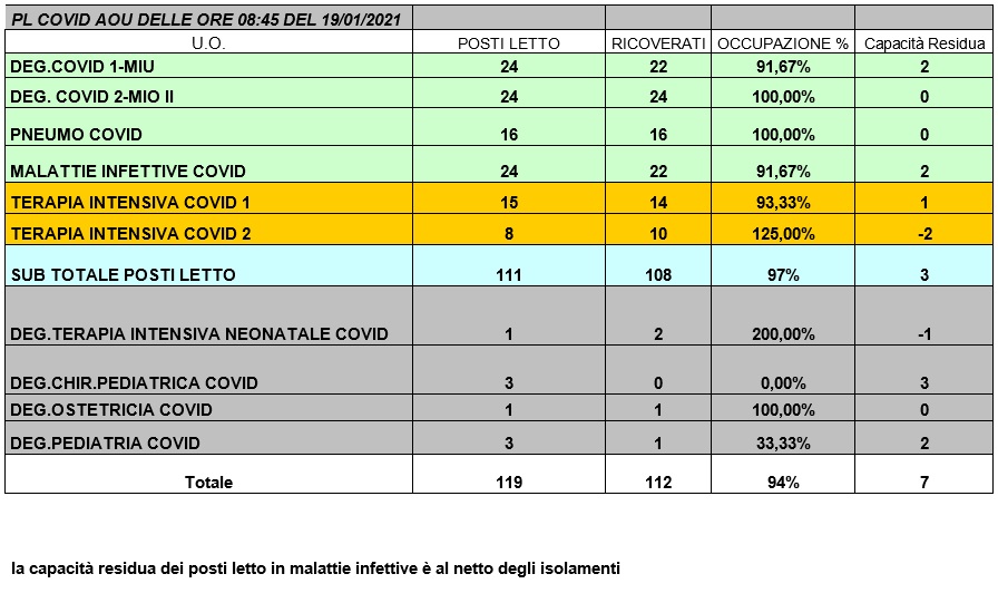 Situazione posti letto reparti Covid 19 gennaio 2021 - ore 8.45.jpg