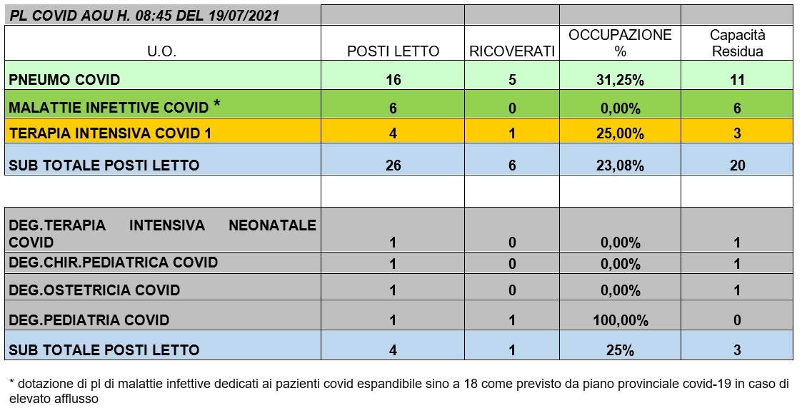 Situazione posti letto reparti Covid 19 luglio 2021 - ore 8.30.jpg