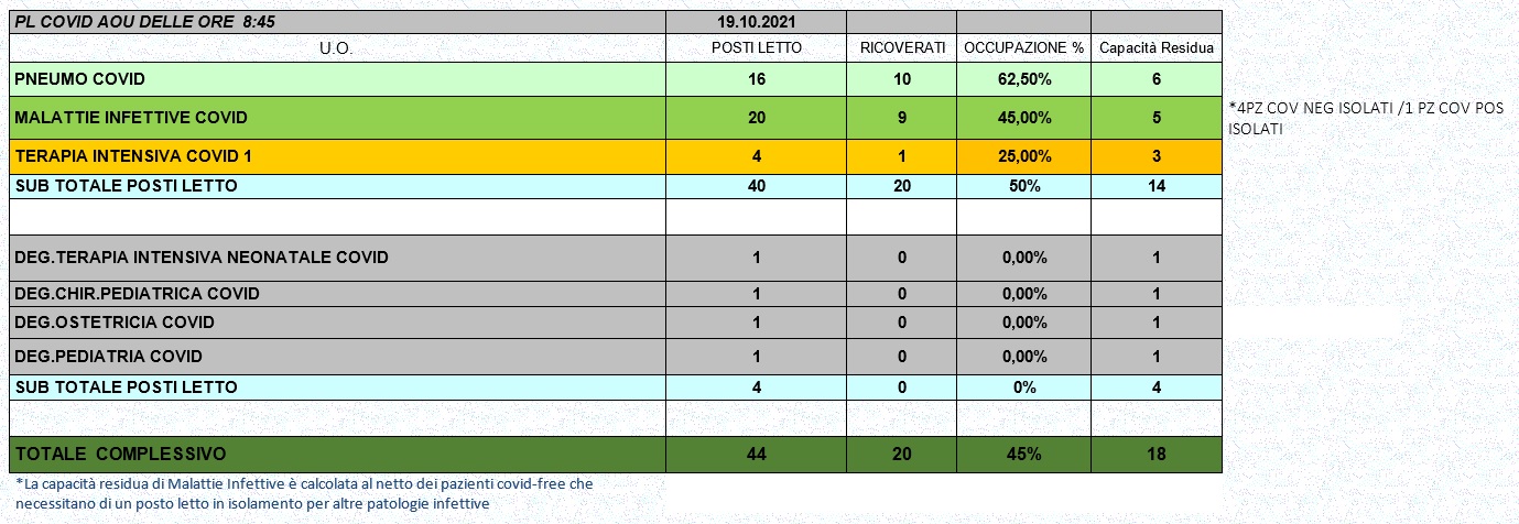 Situazione posti letto reparti Covid 19 ottobre 2021 - ore 8.30.jpg