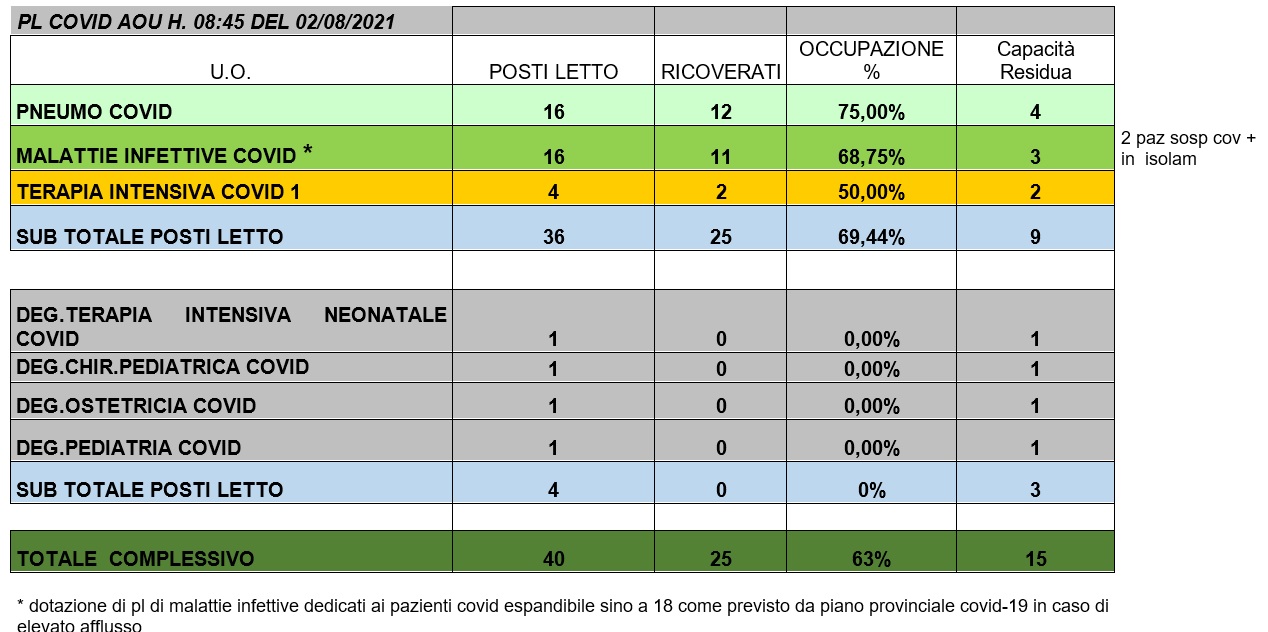 Situazione posti letto reparti Covid 2 agosto 2021 - ore 8.45.jpg