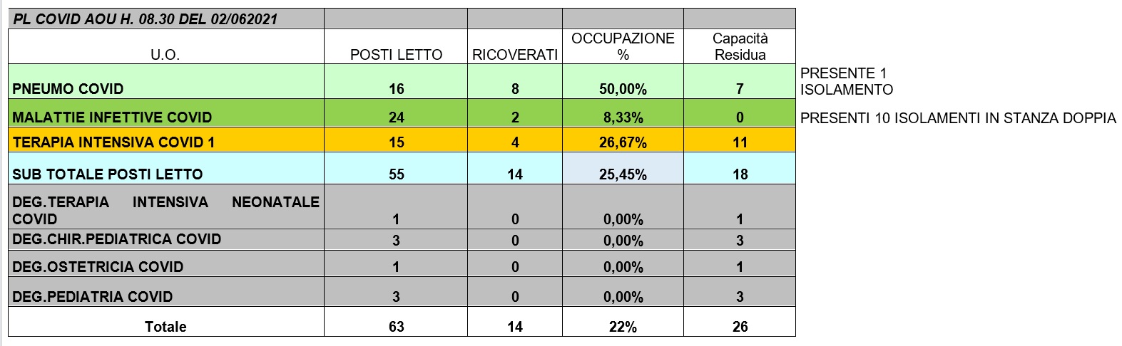 Situazione posti letto reparti Covid 2 giugno 2021 - ore 8.30.jpg