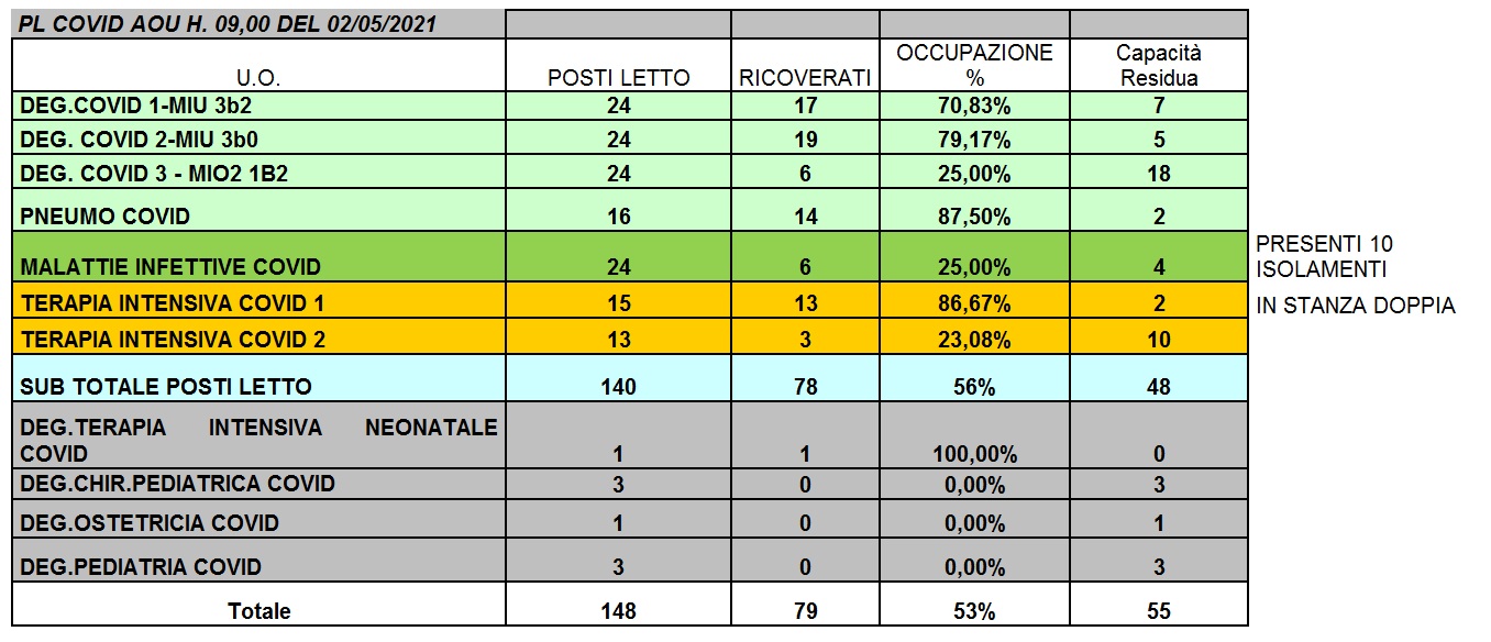 Situazione posti letto reparti Covid 2 maggio 2021 - ore 8.30.jpg