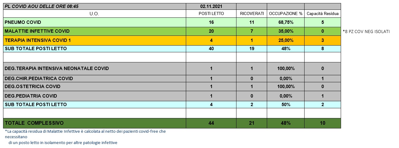 Situazione posti letto reparti Covid 2 novembre 2021 - ore 8.30.jpg