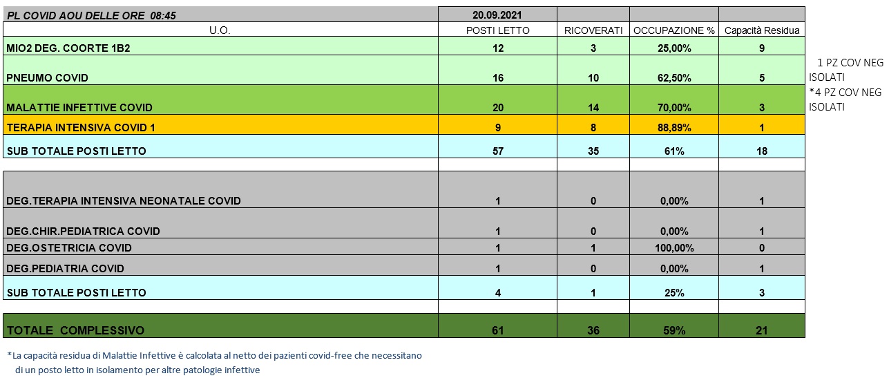 Situazione posti letto reparti Covid 20 settembre 2021 - ore 8.45.jpg