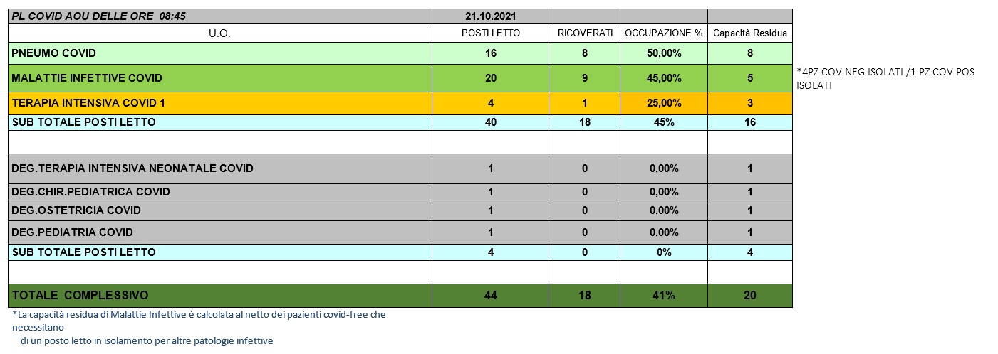 Situazione posti letto reparti Covid 21 ottobre 2021 - ore 8.30.jpg
