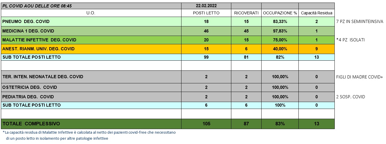 Situazione posti letto reparti Covid 22 Febbraio 2022 - ore 8.45.jpg