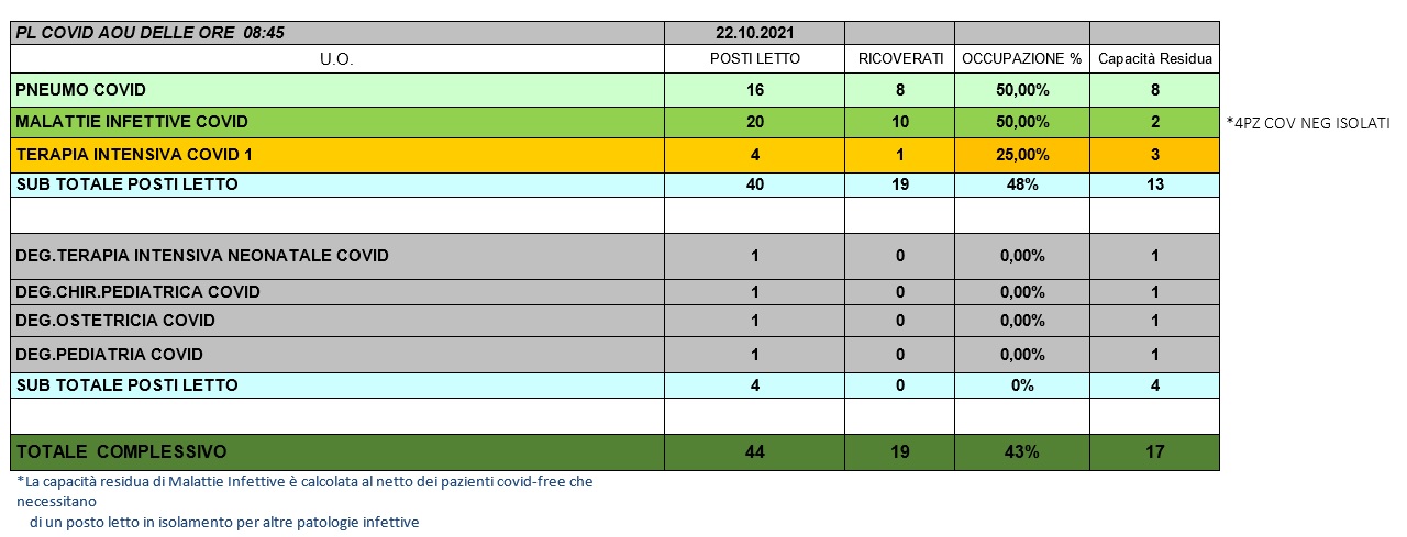 Situazione posti letto reparti Covid 22 ottobre 2021 - ore 8.30.jpg