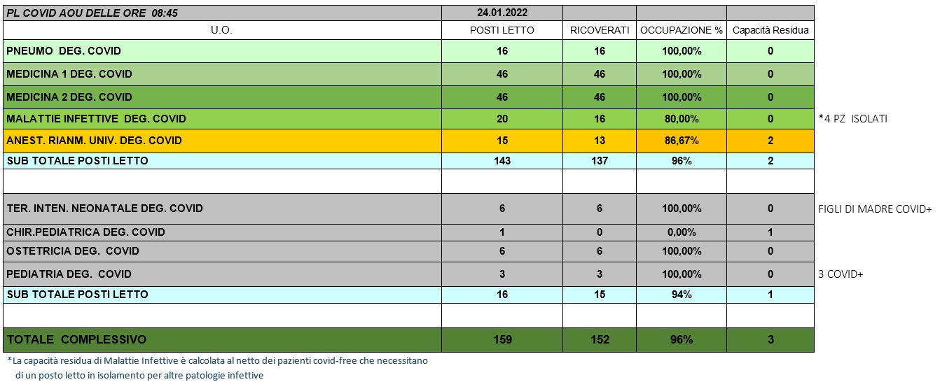 Situazione posti letto reparti Covid 24 Gennaio 2022 - ore 8.45.jpg
